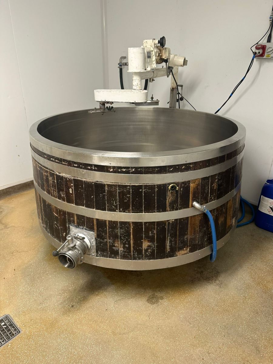Professional 1000-litre cheese vat, stainless steel construction with agitator. Perfect for medium to large-scale cheesemaking operations.Excellent working conditionIdeal for artisan or commercial cheesemakingRobust stainless steel build -